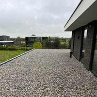 De woning is volledig voorzien van EPDM dakbedekking van Hertalan, waarna het ballast grind is toegebracht en de